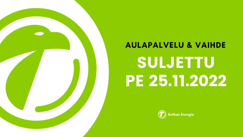 Kotkan Energian asiakaspalvelu ja laskutus uudistuu Karhu Voiman hoitaman Kotkan Energian energialaskutuksen ja asiakaspalvelun oli tarkoitus siirtyä takaisin Kotkan Energialle 1.1.2023 alkaen. Karhu Voiman konkurssista johtuen siirtoa on aikaistettu ja 10.10.2022 alkaen Kotkan Energia vastaa energialaskutuksesta ja asiakaspalvelusta. Kehitämme asiakaspalvelua ja otamme aiemmin ulkoistetun asiakaspalvelun ja laskutuksen osaksi omaa toimintaamme. Kaukolämpöasiakkaille tämä tarkoittaa entistä laadukkaampaa […]
