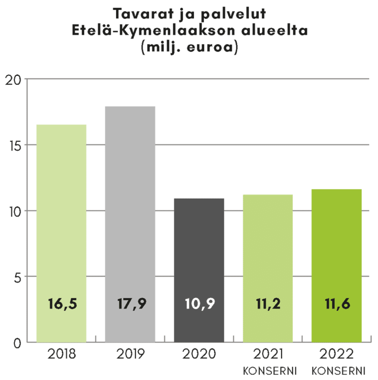 Ostamalla raaka-aineita, tavaroita ja palveluita tuotamme taloudellista hyvinvointia myös toimittajille ja heidän alihankkijoilleen. Konsernissa materiaalien ja palveluiden ostot olivat noin 169 milj. euroa, joista noin 6,86 % ostettiin Etelä-Kymenlaakson alueelta."