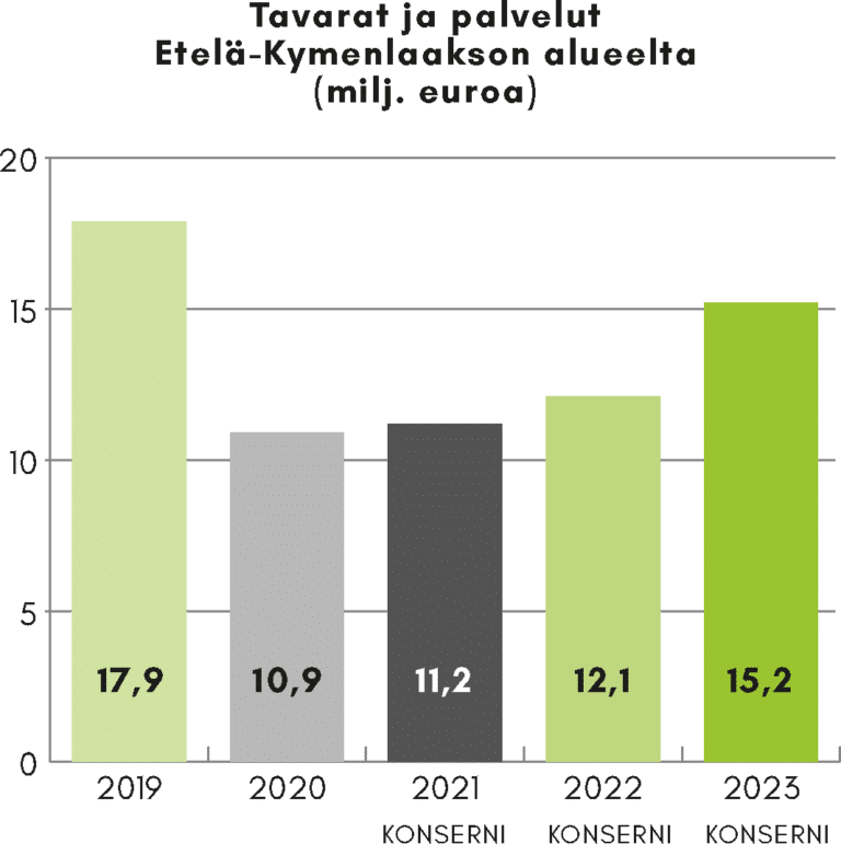 Ostamalla raaka-aineita, tavaroita ja palveluita konserni tuottaa taloudellista hyvinvointia myös toimittajilleen ja alihankkijoilleen. Konsernissa materiaalien ja palveluiden ostot olivat noin 134,5 milj. euroa, joista noin 11,3 % ostettiin Etelä Kymenlaakson alueelta.