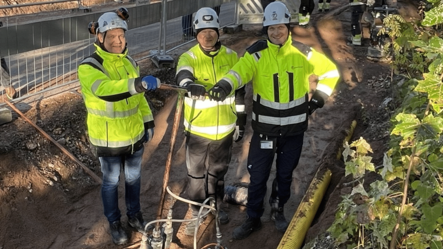 Ristinkallion uusi kaukolämpöverkko liitettiin runkoverkkoon tiistaina 10.10. klo 10.10. Kytkentä tapahtui Kotkan Energia Oy:n toimitusjohtajan Sami Markkasen ja pääurakoitsija Sakki Oy:n toimitusjohtajan Janne Suvirannan toimesta.