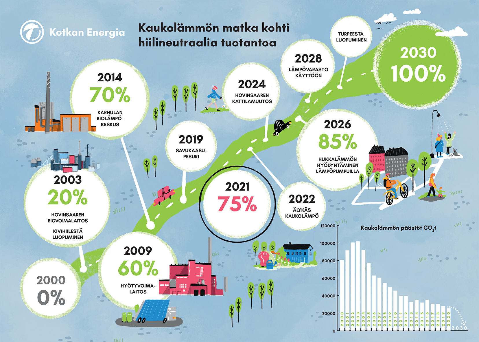 Kotkan Energia panostaa vahvasti energiatehokkuuteen ja ilmastotavoitteisiin. Uusiutuva energia, modernit tuotantoteknologiat ja asiantunteva energianeuvonta muodostavat kokonaisuuden, jonka tavoitteena on pienempi hiilijalanjälki ja kustannustehokkaampi energiankäyttö.